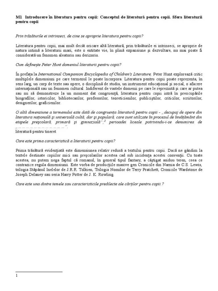 Literatura pentru copii este o componentă importantă a literaturii naţionale. 16.03.2007 · conceptul de literatura pentru copii (referat) 16 martie 2007, 18:54. Literatura pentru copii este un gen literar care se adresează unui anumit segment de vârstă, respectiv celor aflați la anii copilăriei sau ai adolescenței (de la 1 an până la 18 ani). Ca sfera de cuprindere a literaturii pentru copii. Literatură pentru copii note de curs conf.