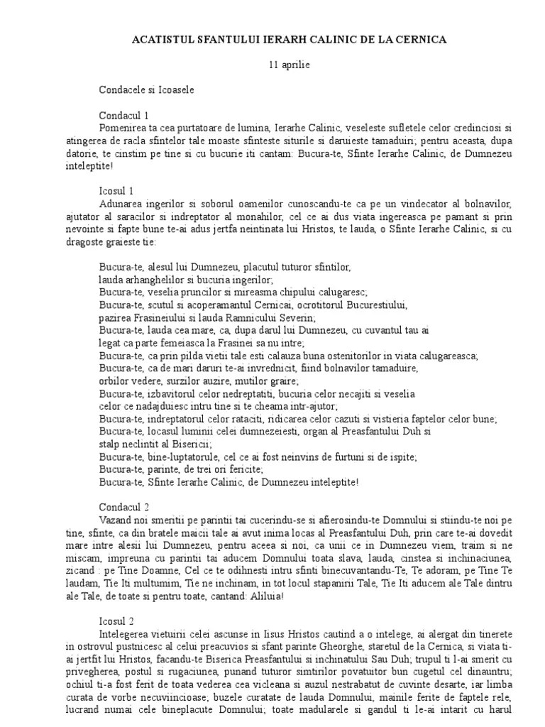 Prin numele de acatist se înţelege „rugăciune citită în picioare", deci este o rugăciune care se citeşte obligatoriu în picioare sau stând în genunchi, dar numai după rostirea rugăciunilor începătoare! 14/11/2015 · copiii îndrăciţi, neascultători, necredincioşi şi desfrânaţi. Ioan botezatorul se adresează celor ce merg în instanță li se judecă, iar acatistul sf. S lava tie, dumnezeul nostru, slava tie! 09/01/2017 · pentru vindecarea bolilor se pot citi acatistul sfântului pantelimon, ocrotitorul celor bolnavi, cât și acatistul sfântului ierarh nectarie, mare făcător de minuni, tămăduitorul celor loviți de boli crunte. 09/01/2017 · pentru vindecarea bolilor se pot citi acatistul sfântului pantelimon, ocrotitorul celor bolnavi, cât și acatistul sfântului ierarh nectarie, mare făcător de minuni, tămăduitorul celor loviți de boli crunte.
